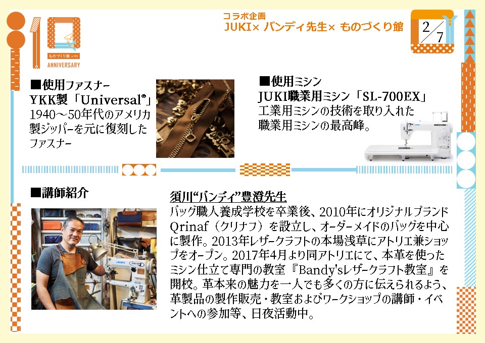 2017年4月より同アトリエにて、本革を使ったミシン仕立て専門の教室『Bandy'sレザークラフト教室』を開校。