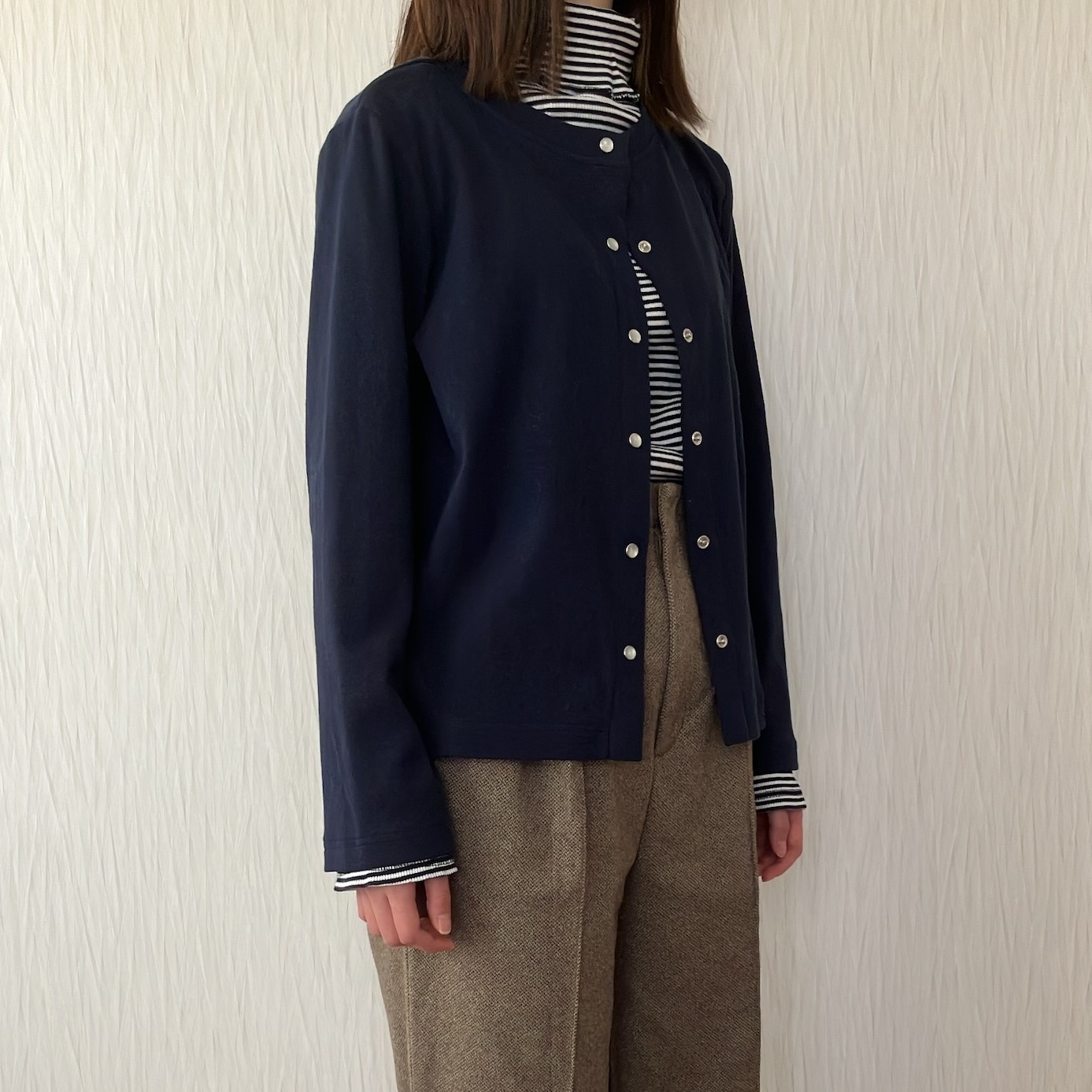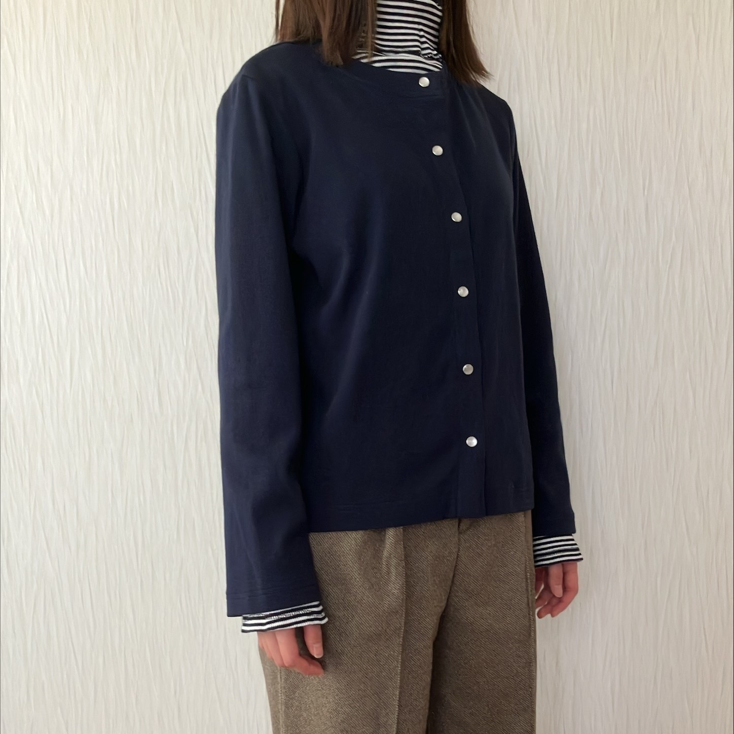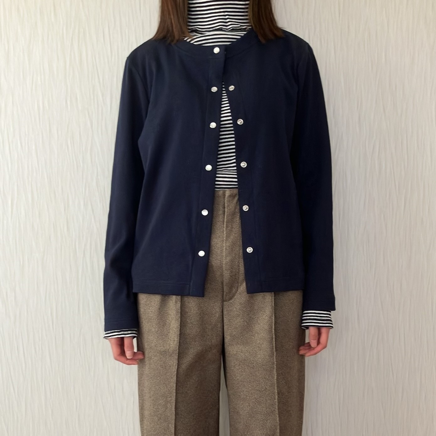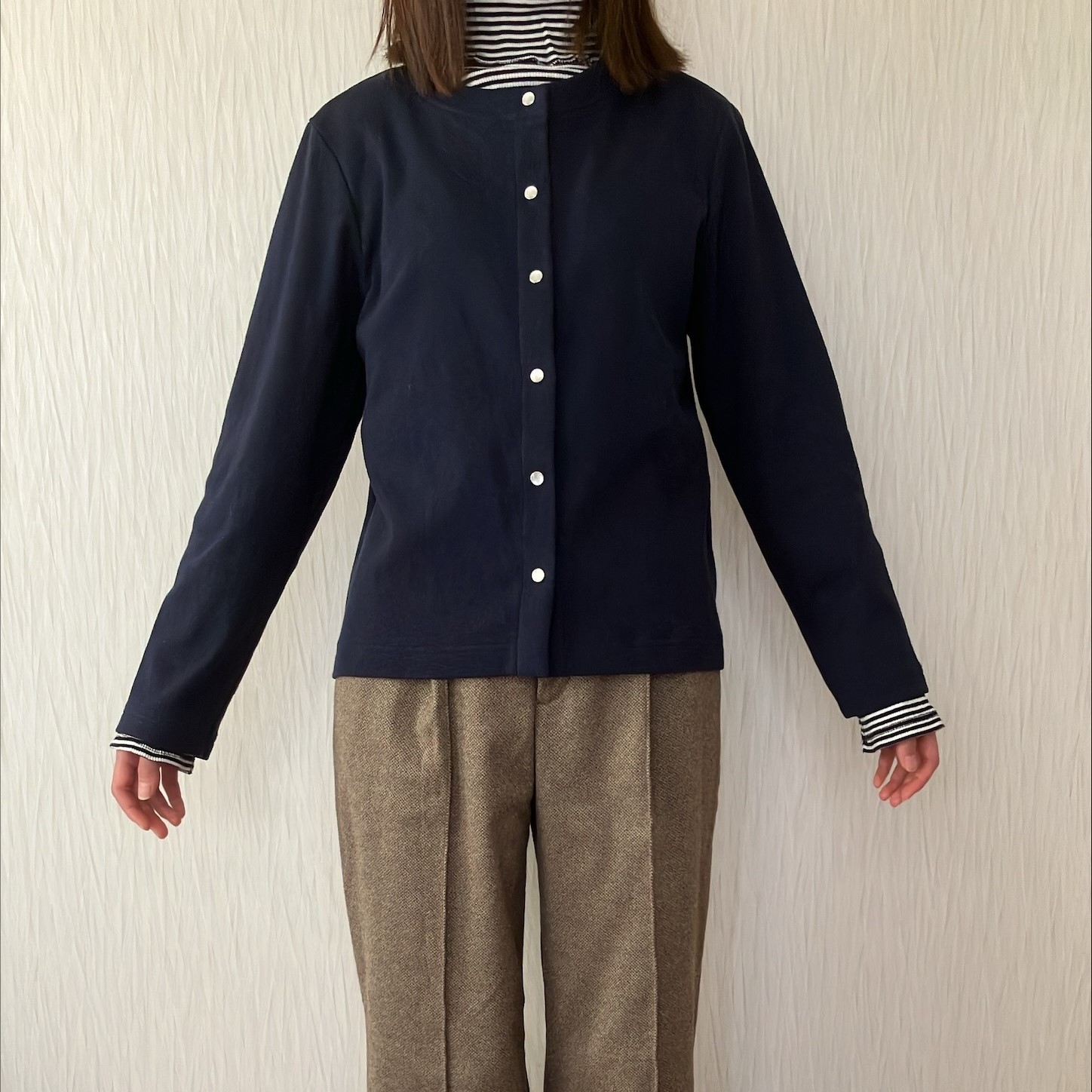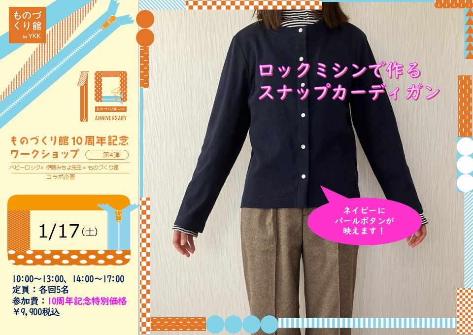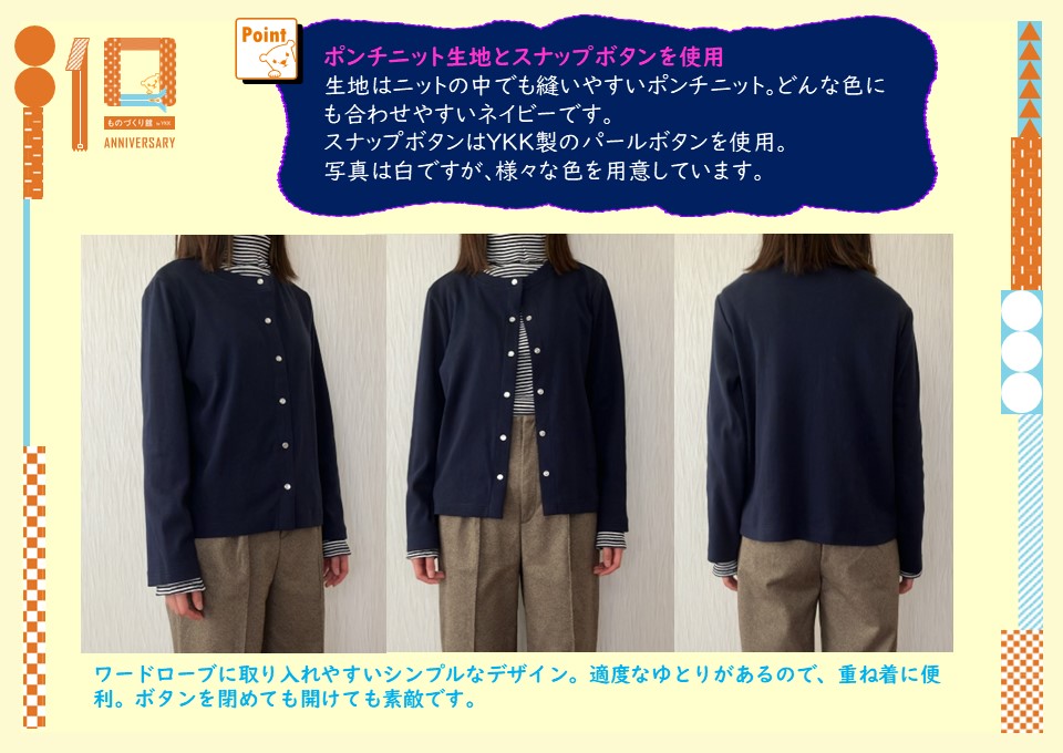 ベビーロック社の最上位ロックミシン・Sakuraを使って、ニット素材のスナップカーディガンを作ります。