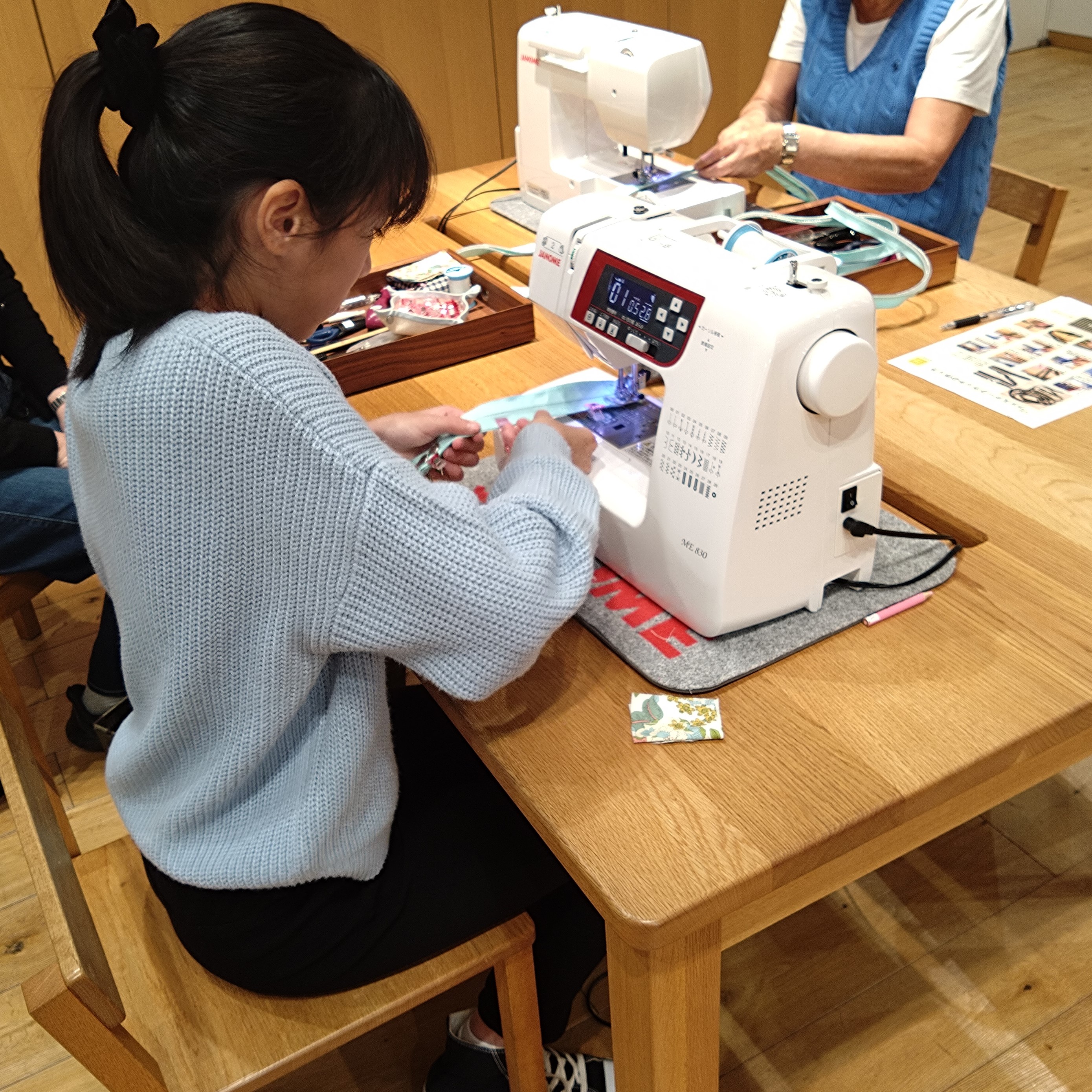 ミシン初心者の方もいましたが、皆さん慎重に縫い進め、最後に平らな四角形になるように調整。
