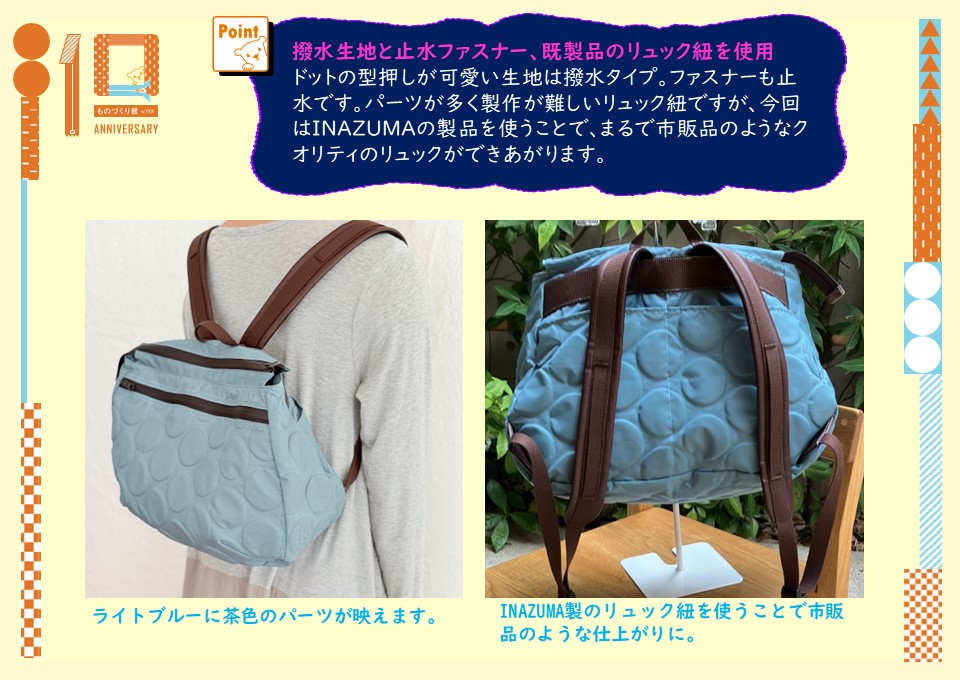 「可愛くて軽くて雨にも強いリュックができあがって嬉しい」「先生や他の皆さんとの会話が楽しかった」と喜んでいただくことができました。