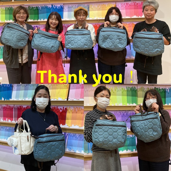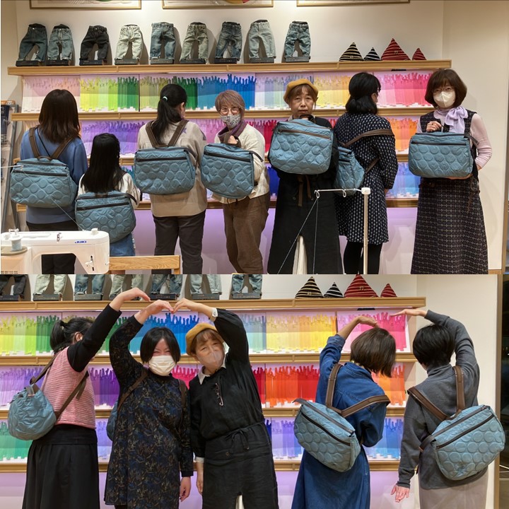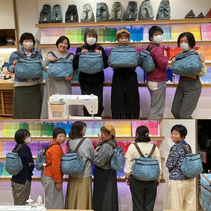 縫い直しや多少の宿題(内袋の返し口閉じ)が生じた方もいましたが、全員が大人可愛いリュックを完成。