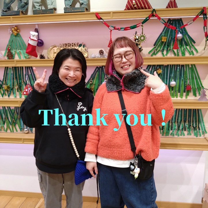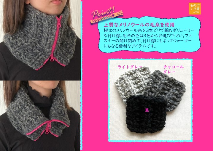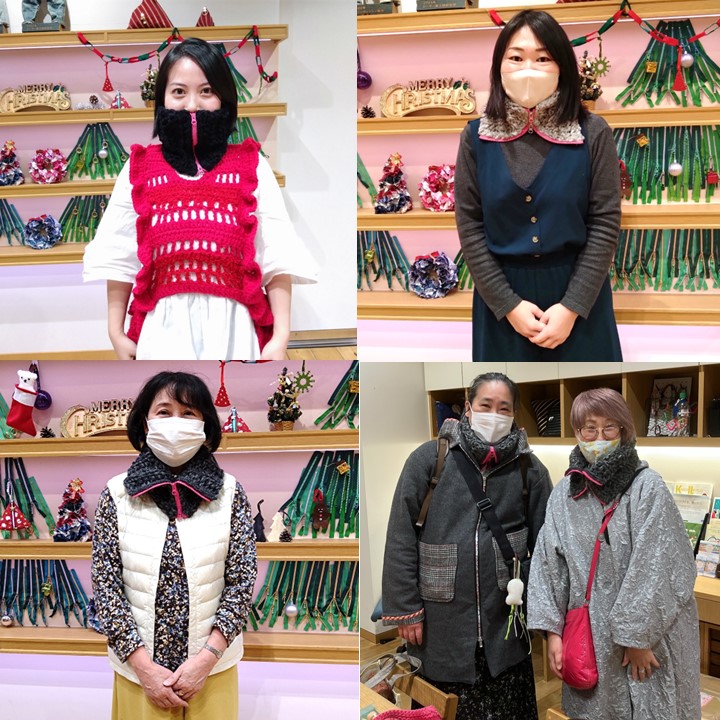 黒やグレーにピンクのファスナーが映えるおしゃれな付け襟を早速身に付けて、皆さんとても嬉しそう。